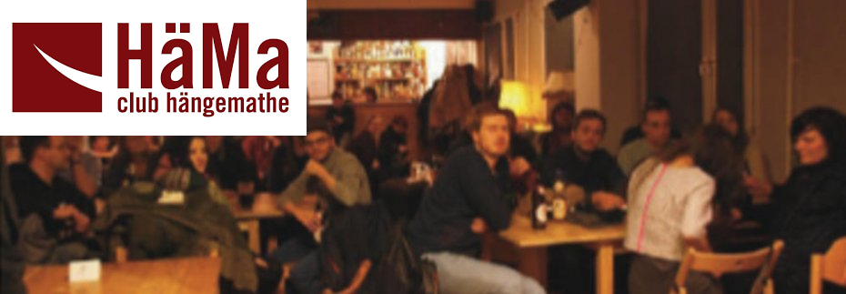 Versteckt am Kopfe der Zeunerstraße erwartet Dich in der HängeMathe ein hübsch eingerichtetes Wohnzimmer, eine kleine Höhle, aus der gedämpftes Lachen und Kichern dringt. Vor der Eingangstür begrüßen Dich freundliche Raucher, du betrittst den Raum, es ist angenehm warm, die Atmosphäre ist fröhlich und die Luft riecht nach frischem Sterni und Club HängeMathe.